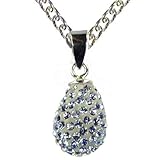Silver White Crystal Teardrop Pendant with 18" Curb Chain