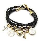 #3: JC-31. BLACK thread wrap vintage bracelet for your wrists, our ribbon bracelet twists and turns around a brilliant bangle of rhinestones,silver plated Gold charms, finishing with our logopuffed heart key and coin charms- gold Finish
