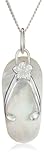 Silver White Mother Of Pearl Flip Flop Pendant + Curb Chain 18" Adjustable