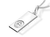 A 19 x 9mm silver ingot is decorated with the traditional St. Christopher motif - the patron saint of travellers, and strung from a 16"/41cm silver chain. Ingot measures 19mm in length and 0.9mm width. Read more