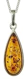 Silver Ladies Amber Teardrop Pendant with 18" Curb