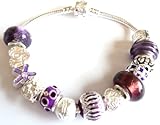 Purple Rain - Pandora Style Charm Bracelet - Ideal Birthday Gift. Twelve aasorted purple/spacer charms on a clasp charm bracelet- Beads/Charms may vary from the image and reflects the individual nature of our charm bracelets - Handmade by Bay Jewellery Packaged in a lovely organza gift bag. 20cm approx Chain Slide on/off beads Read more