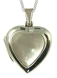 Silver White Mother of Pearl Heart Locket 18" Curb