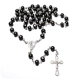 Black rosary. Made with round 6mm black wood beads. The rosary circle measures 70cm around. 9cm drop to the cross. Finished in a silver plating. Picture not actual size. Read more