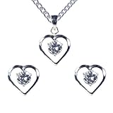 #9: Silver CZ Heart Pendant and Stud Earrings Set with 18" Curb Chain
