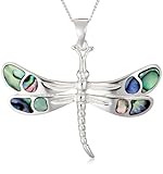 Silver Pave Shell Dragonfly Pendant + Curb Chain 18"