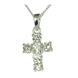 Silver Ladies Cubic Zirconia small cross pendant + 18" curb chain