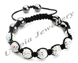 #4: SH-LOW 33 AURORA SHAMBALLA: clear white ice aurora crystal diamond bracelet ,Shamballa Bracelet Macrame Disco Ball Iced silver swarovski bling bling 9mm Unisex for men and women ,by Utopia London©