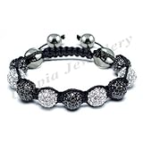 #8: SH-MIX BLACK & AURORA SHAMBALLA: swarovski crystal Shamballa Bracelet Macrame Disco Ball mixed jet Diamond and clear white ice crystal bling bling 12mm Unisex for men and women,by Utopia London© exclusively sold by paris Jewellery-Online