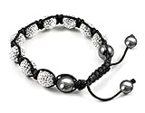 Beautiful Shamballa Bracelet with 9 x 10mm SILVER WITH CLEAR Swarovski Crystal Beads, 2 x 8mm and 2 x 5mm Haematite Beads on high quality black waxed cord. Unisex - will fit most wrist sizes. Adjustable 18 - 25cm. Read more