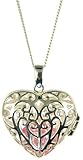 #6: Silver Ladies' Filigree Heart Locket on 46cm Curb Chain with Removable Pink Cubic Zirconia Heart Inside