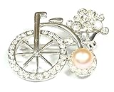 Beautiful silver-plated brooch in the shape of an old-fashioned Penny Farthing bicycle with a flower basket on the front. Set with genuine freshwater pearl and CZ in a silver-plated setting. 3.5cm wide by 3cm tall and sent gift boxed.Jewellery is not recommended for children under 5 due to small parts. Children should be supervised at all times when wearing jewellery. Read more