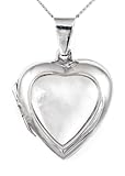 Mother of Pearl Heart Locket Necklace, Silver Curb Chain, 46cm Length, Model C/SP594