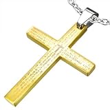 Stainless steel the lords prayer gold cross pendant with polished finish. Size 4.0 x 3.0cms. Comes complete with a free standard 60cm ball chain and looks great when on! The chain in the photo is for display purposes only and will not be included. Why stainless steel? well we only use high medical grade steel which won't mark your skin and keeps its colour when worn. Its highly scratch resistant long lasting, tough and looks just like silver or white gold when on but at a fraction of the price! The pendant will come complete in a jewellery box, and shipping will be FREE in the uk. The perfect gift. Note! English scripture lords prayer is also available in this style in the store if required. Read more