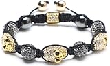 SJO-Gold and Crystal Skull Hematite Gray Swarovski Shamballa Bracelet 12mm Read more